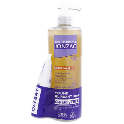JONZAC NUTRITIVE ATO Huile Lavante Relipidante Bio 500ml + Baume Relipidante Anti Grattage Bio 50ml Offert est disponible en vente en ligne à prix discount sur Pharmashopdiscount.