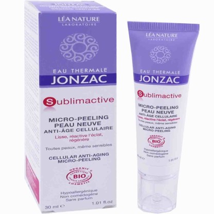 SUBLIMACTIVE MICRO-PEELING PEAU NEUVE discount de JONZAC, l’eau millénaire régénérante dans un soin anti-âge conçu pour lutter contre le processus d’inflammation silencieuse et réduire les signes du vieillissement cutané, dans votre parapharmacie en ligne à prix discount