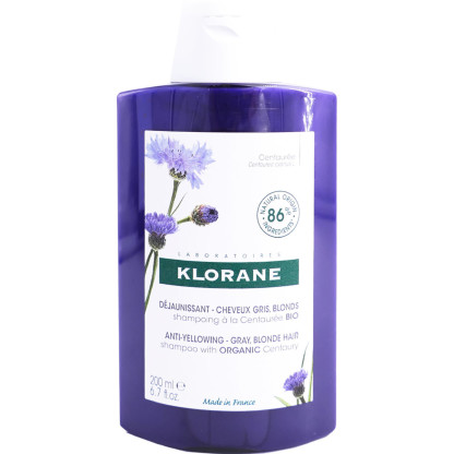 Depuis 1966, les laboratoire KLORANE développent des produits cosmétiques authentiques, efficaces, simples et sûrs, formulés avec des actifs végétaux, issus de la passion du fondateur de la marque, Pierre Fabre, pour la nature et les plantes. La gamme capillaire offre un grand choix de produits conçus pour apporter une solution efficace et naturelle à tous les types de cheveux. La ligne à l’extrait de centaurée, propose des soins capillaires spécialement conçus pour raviver l’éclat des cheveux blancs ou gris et les protéger du jaunissement. Le shampooing déjaunissant de KLORANE, à la base lavante très douce, contient un extrait de centaurée riche en pigment végétal aux nuances bleutées, qui ravive l’éclat naturel des cheveux blancs en les nuançant de reflets argentés, rétablit douceur, brillance et volume à la chevelure. Sans colorant de synthèse. Hypoallergénique.