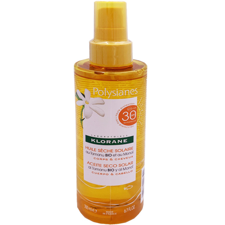 Le laboratoire Klorane propose des produits fabriqués en France à partir d’ingrédients botaniques rigoureusement sélectionnés. 100% des cultures des actifs végétaux utilisés par le laboratoire n'impactent pas le renouvellement de la plante. Le laboratoire Klorane s’engage à réduire l’impact de ses formules et emballages : 1 produit Klorane sur 2 est écoconçu. Enrichie au Monoï et Tamanu, cette huile sèche corps et cheveux donne à la peau un bronzage lumineux et uniforme et laisse la peau rayonnante et soyeuse tout en la protégeant.