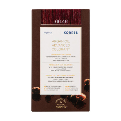 Coloration Capillaire Permanente discount de KORRES, la coloration haute performance dans votre parapharmacie en ligne à prix discount, pour assurer couleur intense, brillance et protection longue durée, Foncé Cuivré Violine Intense 66.46