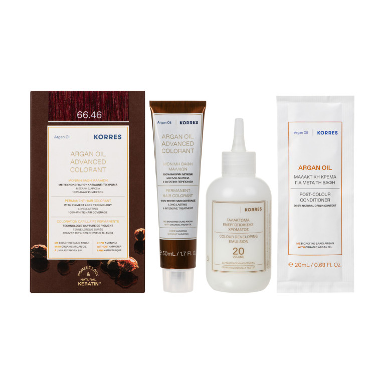 Le laboratoire KORRES conçoit des produits de beauté (cosmétiques, maquillage, crèmes,…), des parfums et des produits homéopathiques pour le bien-être au quotidien à base exclusivement de plantes et ingrédients naturels. La gamme de Colorations permanentes est spécialement conçue pour couvrir en totalité les cheveux blancs en une application, et offrir une brillance extrême longue durée. Les colorations KORRES sont formulées sans ammoniaque, sans résorcine, sans p-phénylènediamine (PPD) ni paraben et respectent intensément la nature du cheveu et le cuir chevelu. Elles contiennent de l’huile d’argan et de la kératine naturelle protectrices qui préservent durablement la couleur et l’hydratation du cheveu en renforçant la fibre capillaire, afin de protéger des agressions quotidiennes. Les colorations ont été conçues avec la technologie « capture de pigment » qui va fixer la couleur au cœur de la fibre capillaire grâce à des micro-colorant qui sont encapsulés pour former des macromolécules de couleur et ainsi intensifier la couleur. Chaque coloration contient un extrait d’avoine (riche en vitamines B et microminéraux) pour protéger les cheveux en formant un film protecteur transparent à la surface afin de les rendre plus forts, brillants et souples. Les cheveux sont éclatants de couleur et de lumière, la chevelure est souple et facile à coiffer. Testé sous contrôle dermatologique Convient aux vegans. Pas de test sur animaux.