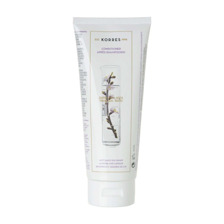 Les après-shampooings de KORRES facilitent le démêlage de tous les types de cheveux après les shampooings et leur redonne douceur et vitalité par leurs ingrédients naturels. L’après-shampooing Amandes & Graines de lin composé d’extraits d’amande (riche en protéines et acides aminés) et de graines de lin (adoucissante, émolliente), nourrit et hydrate intensément les cheveux pour protéger de la casse et de la sècheresse, et resserre les écailles de la fibre capillaire du cheveu. Après le soin les cheveux sont brillants, très doux et retrouvent toute leur souplesse et du volume. Le coiffage se fait tout en douceur et facilement. Sans paraben, sans huile minérale, sans silicone. Testé sous contrôle dermatologique