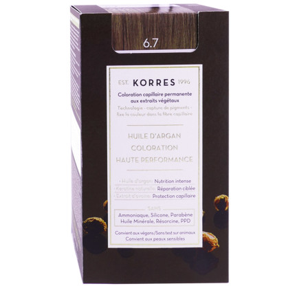 Coloration Capillaire Permanente discount de KORRES, la coloration haute performance dans votre parapharmacie en ligne à prix discount, pour assurer couleur intense, brillance et protection longue durée, Blond foncé marron 6.7