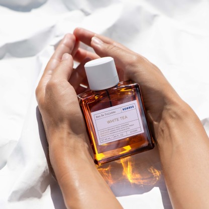 L’Eau de toilette White Tea pour femme de KORRES, une fragrance féminine pour la femme sensuelle aux notes hespéridés, et fraîches, dans votre parapharmacie en ligne à prix discount.