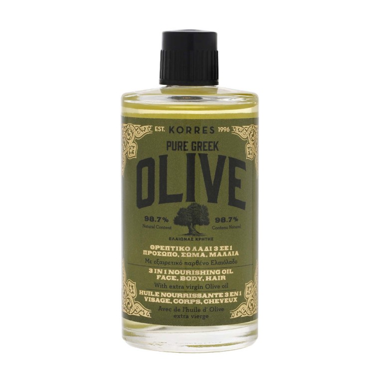 L’Huile Nourrissante 3 en 1 Pure Greek Olive discount de KORRES, les vertus de l’olive Crétoise dans votre parapharmacie en ligne, dans un soin hydratant, nourrissant. Pour le corps, le visage et les cheveux