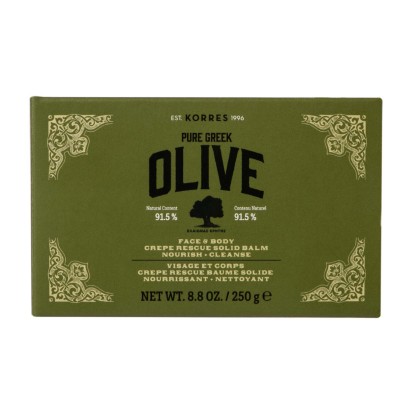 N'hésitez plus et offrez à votre peau le soin qu'elle mérite avec KORRES OLIVE CREPE RESCUE BAUME SOLIDE NETTOYANT & NOURRISSANT 250G.