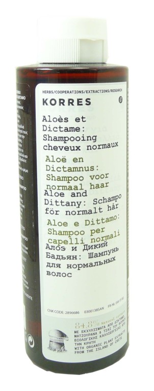 Les shampooings de KORRES sont formulés à base d’extraits naturels de plantes sans parabène, sans silicone pour un entretien des cheveux au quotidien tout en douceur. Le shampooing au pH neutre qui respecte tous les cuirs chevelus et tous les types de cheveux, est composé d’extraits d’aloès (riche en protéines et acides aminés) et de Dictame (herbe originaire de Crête), pour renforcer les cheveux et le cuir chevelu et les protéger des agressions extérieures, les hydrater, rééquilibrer le cuir chevelu et apaiser les inconforts. Après le shampooing les cheveux sont brillants, très doux et retrouvent toute leur souplesse.