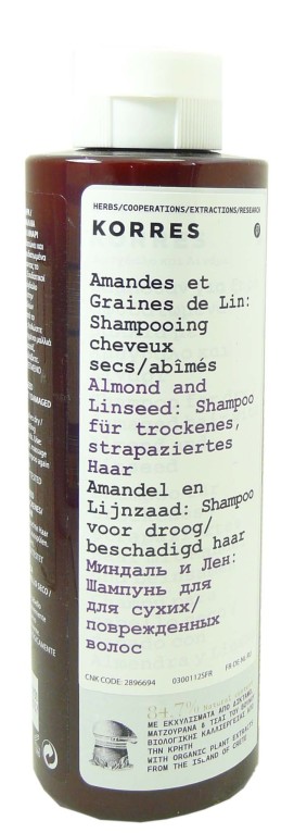 Les shampooings de KORRES sont formulés à base d’extraits naturels de plantes sans parabène, sans silicone pour un entretien des cheveux au quotidien tout en douceur. Le shampooing composé d’extraits naturels d’amande et de graines de lin qui sont riches en agents hydratants, renforce les défenses naturelles du cuir chevelu, nourrit et hydrate intensément les cheveux pour protéger de la casse et de la sècheresse, et resserrer les écailles de la fibre capillaire du cheveu. Après le soin les cheveux sont soyeux, très doux et retrouvent toute leur souplesse. Le coiffage se fait tout en douceur et facilement.