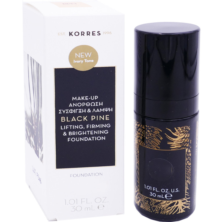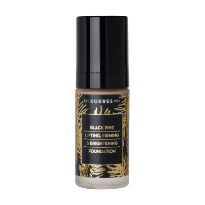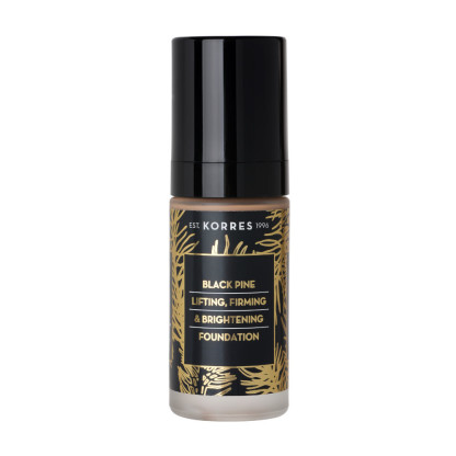 Les soins Lift-fermeté de KORRES composés d’ingrédients naturels à base de pin noir et de quercétine & chêne sont idéals pour combattre les signes de l’âge installés et préserver la peau de sa jeunesse. Le Fond de Teint Pin noir de KORRES est un soin indispensable à base d’extraits végétaux (pin noir, raisin, thé vert) et d’huile d’argan, pour lisser la peau, protèger des signes de l’âge, nourrir, et unifier le teint par sa couvrance optimale. Le fond de teint anti-âge global va protéger les cellules cutanées, détoxifier la peau pour qu’elle respire, renforcer la barrière cutanée pour mieux lutter contre les signes de l’âge, et redonner de l’élasticité et de la souplesse à la peau en la nourrissant. Sa texture fluide et non grasse permet d’appliquer le fond de teint facilement et s’étire pour s’homogénéiser sur la peau sans aller à l’intérieur des rides. Pendant 8 heures, les petites imperfections sont estompées, la peau est douce et lisse, et le teint unifié et radieux. Testé sous contrôle dermatologique.