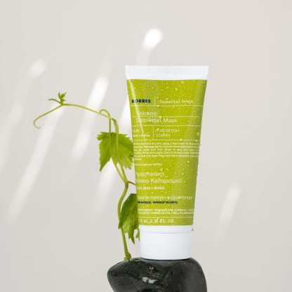 N'hésitez plus et offrez à votre peau le soin qu'elle mérite avec le masque volcanique resurfaçant au raisin de Santorin de Korres.