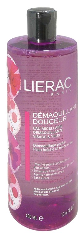 LIERAC est la première marque française dermo-cosmétique spécialisée dans la correction du vieillissement et des désordres cutanés, et instauratrice de la « cosmétique technique » qui allie plaisir des sens et efficacité. La gamme DEMAQUILLANT est constituée de soins aux textures délicieuses, développés pour répondre à chaque besoin et à chaque type de peau, composés d’une association unique de miel végétal et de probiotiques afin de transformer le démaquillage en véritable rituel beauté. Démaquillant Douceur de LIERAC, est spécialement conçu pour éliminer en douceur les traces de maquillage et les particules de pollution du visage et des yeux, adoucir et rafraîchir tous les types de peaux. Sa formule est enrichie d’un complexe Ecoskin (Miel végétal, probiotiques) pour éliminer les cellules mortes et les toxines, et préserver l’écosystème cutané en stimulant les défenses naturelles de la peau, et d’extraits végétaux (fleurs de lin et mauve) pour détoxifier, apaiser et adoucir lapeau. Les agents nettoyants doux vont dissoudre les impuretés et le maquillage du visage et des yeux pour une peau nette, souple, fraîche et apaisée. Pratique le Démaquillant Douceur ne nécessite pas de rinçage. Hypoallergénique sans paraben sans alcool