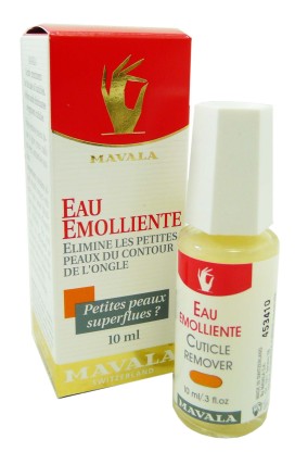 MAVALA conçoit des produits de maquillage dermatologiques spécialement formulés avec des ingrédients rigoureusement sélectionnés pour prendre soin des ongles, des mains, du visage et du corps et les sublimer ! L’eau émolliente de MAVALA est un soin à base d’une formule thixotropique qui ramollit et assouplit le contour de l’ongle afin de détacher délicatement les petites peaux mortes pour des ongles nets sans abîmer les ongles.