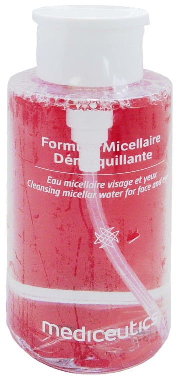 Formule micellaire démaquillante de MEDICEUTICS, l’eau qui démaquille tout en douceur tous les types de peaux du visage, et des yeux.