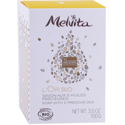 La gamme L’Or Bio de MELVITA est composée de soins à base d’huiles rares et précieuses originaire du monde entier aux bienfaits réparateurs, nourrissants pour embellir la peau et les cheveux. Composée de 5 huiles bio (Argan du Maroc, Kendi d’ Indonésie, Inca Inchi d’Amazonie, Dattier du désert du Burkina, Baobab d’ Afrique) riches en oméga 3, 6, et 9 issues de différents endroits du monde, Savon extraordinaire L’OR BIO nettoie, nourrit, régénère la peau, sublime la peau et redonne de la douceur au corps. Le corps aura des fragrances venues du Maroc, d’Indonésie, d’Amazonie, et du Brésil ! Sa texture enveloppera le corps d’un parfum envoûtant pour une peau douce et sublime.