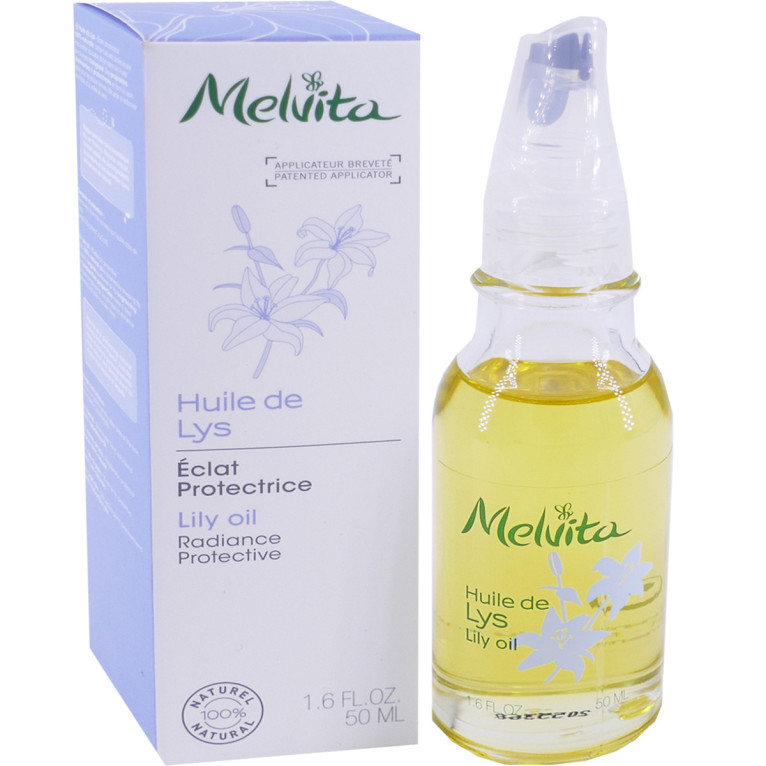 MELVITA, marque pionnière de la cosmétique BIO, est née de la passion d’hommes pour le miel, cette merveilleuse substance située entre le mode animal et végétal. Depuis près de 40 ans, MELVITA développe des produits dermo-cosmétiques en allégeant au maximum son impact sur la planète et en protégeant la nature et les abeilles. MELVITA offre la garantie de produits composés d’ingrédients naturels et biologiques, exempts de matières pétrochimiques peu biodégradables, pour toujours offrir le meilleur et le plus beau de la nature. La gamme des Huiles végétales de MELVITA est constituée d’huiles 100% naturelles, véritables trésors de beauté qui puisent leurs pouvoirs au cœur du monde végétal et offrent des soins authentiques : adoucissants, nourrissants, réparateurs… pour la peau et les cheveux. L’huile de Lys MELVITA obtenue par macération du bulbe de lys dans de l’huile de tournesol bio, aux propriétés hydratantes et repulpante, est idéale pour le soin des peaux en manque d’éclat. Riche en acides gras essentiels, elle va renouveler les cellules de la peau pour redonner éclat et luminosité. Les taches seront estompées, la microcirculation cutané et l’oxygénation des tissus améliorée. Dès le premier soin, la peau est comme repulpée, douce et lumineuse. Huile de 1ère pression à froid de culture biologique sans colorant ni conservateur.