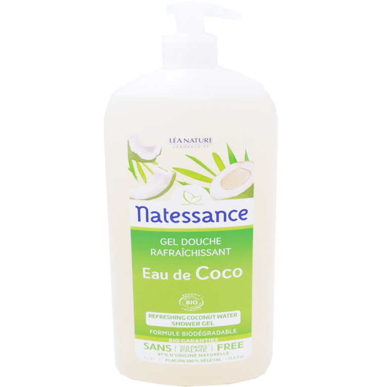 Depuis 2003, Natessance développe des produits de soin élaborés avec des ingrédients issus de filières bio équitables, sans substance nocive ou suspecte pour la santé, pour offrir le meilleur aux bébés, aux enfants et à leurs parents grâce à des gammes adaptées aux besoins de chacun. La gamme gels douche propose des produits formulés avec une base lavante 100% d’origine naturelle issue de la noix de coco pour nettoyer la peau avec une extrême douceur tout en respectant l’équilibre cutané. Le Gel douche Eau de Coco de Natessance, qui développe une mousse onctueuse au contact de l’eau, est spécialement conçu pour laver et protéger tous les types de peaux. Il redonne souplesse, douceur et confort, et renforce l’épiderme grâce à l’eau de coco bio, et laisse la peau délicatement parfumée pour un voyage sur une île sous les cocotiers ! Après la toilette, la peau fraîche retrouve sa souplesse et son confort avec une grande douceur. Testé sous contrôle dermatologique. Sans huile de palme, ni dérivés