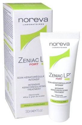 La gamme Zéniac de NOREVA est composée de soins pour les peaux acnéiques (crème, gel nettoyant,…). Le Soin kérato-régulateur intensif Zéniac est composé d’Alpha-Hydroxy-Acides (AHA) de 3 formes d’acides (mandélique, salicylique, tartrique), de lactate d’ammonium et de micro-éponges pour une haute tolérance. Il va éliminer le bouchon corné et réguler sa formation afin de lutter contre l’apparition de nouvelles imperfections et de peau épaisse, réguler la quantité de sébum et absorbé la quantité en excès, et hydrater la peau. Ses agents matifiants élimineront les zones de brillance sur le visage pour un fini mat rémanent. Jour après jour, la peau est nette, lisse et matifiée, le grain de peau est affiné.