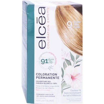 ELCEA Coloration Experte discount des laboratoires ELCEA, la coloration conçue par des experts capillaires dans votre parapharmacie en ligne à prix discount, pour assurer couleur intense, brillance et protection longue durée, Blond Très Clair N°9