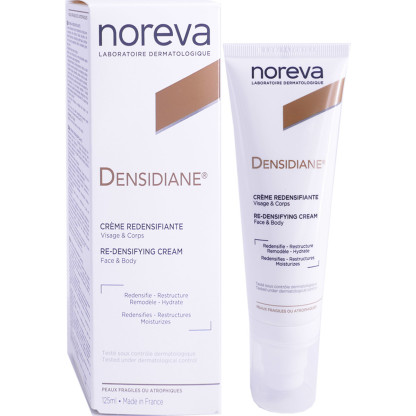 La Crème Redensifiante DENSIDIANE discount de NOREVA le soin dermatologique triple action créé par des dermatologues à prix discount dans votre parapharmacie en ligne, pour remodeler, restructurer et redensifier la peau, visage, corps peaux matures fragiles ou atrophiques, à partir de 50 ans.
