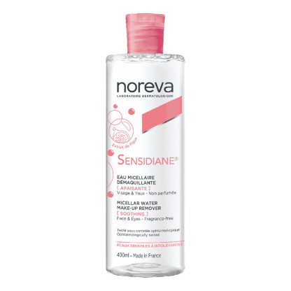 SENSIDIANE Eau micellaire Démaquillante apaisante discount des laboratoires NOREVA, le soin d’hygiène conçu par des dermatologues dans votre parapharmacie en ligne à prix discount, pour nettoyer en douceur, démaquiller les yeux, et le visage des peaux sensibles à intolérantes.