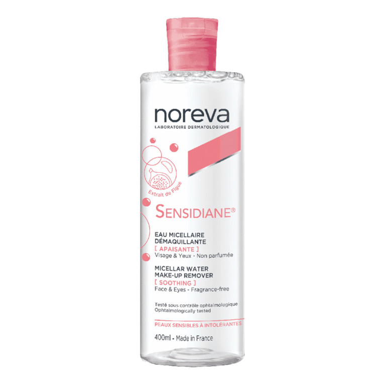 La gamme SENSIDIANE est spécialement conçue pour offrir une solution efficace aux peaux sensibles et réactives en proposants des soins pro-régulateurs de la sensibilité cutanée. SENSIDIANE Eau micellaire Démaquillante apaisante des laboratoires NOREVA, est un soin spécialement formulé pour nettoyer en douceur, démaquiller et calmer les inconforts et irritations en un seul geste les peaux réactives et sensibles. Sa formule très haute-tolérance à base de micelles douces pour éliminer le maquillage même résistant, et de Neutrazen Pro apaise instantanément les sensations d’irritations et tout inconforts et régule la sensibilité de la peau. Après le soin, la peau est douce, propre et apaisée avec une sensation de fraîcheur. Sans parfum, testé sous contrôle ophtalmologique et dermatologique.Aqua (water), PEG-6 caprylic/ capric glycerides, glycerin, PEG-40 hydrogenated castor oil, phenoxyethanol, sodium benzoate, potassium azeloyl diglycinate, butylene glycol, citric acid, Ficus carica (fig) fruit extract, Centella asiatica leaf extract, xanthan gum, potassium sorbate, dextran, palmitoyl tripeptide-10. *