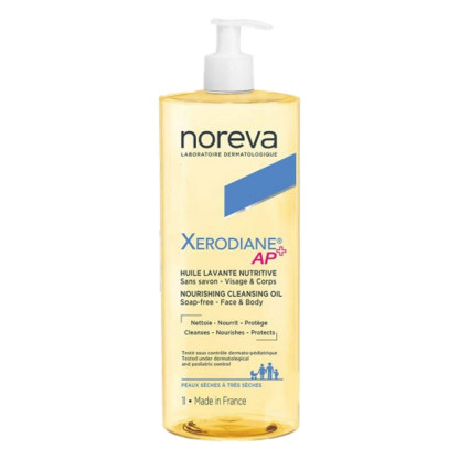 L’Huile Lavante Nutritive XERODIANE AP+ discount de NOREVA, le soin d’hygiène des peaux sèches à très sèches, de toute la famille (bébés à adultes), dans votre parapharmacie en ligne à prix discount Visage et corps