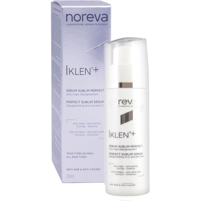 Le Sérum Sublim Perfect Iklen+ de NOREVA discount, le soin anti-taches et anti-age pour corriger et réduire les taches brunes sur le visage, le décolleté et les mains, dans votre parapharmacie en ligne à prix discount.