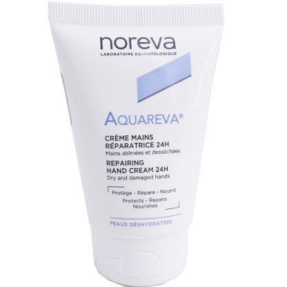 AQUAREVA Crème Mains Réparatrice 24H des laboratoires NOREVA discount, le soin conçu par des dermatologues, pour protéger, apaiser, hydrater en profondeur les peaux sensibles abîmées et desséchées, dans votre parapharmacie en ligne à prix discount.