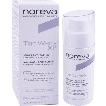 TRIO WHITE XP Sérum anti-tache discount des laboratoires NOREVA, le soin conçu par des dermatologues pour corriger, prévenir les taches pigmentaires et unifier, en ligne dans votre parapharmacie discount.