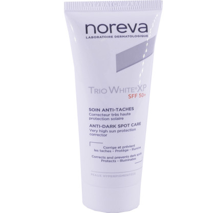 TRIO WHITE XP Soin anti-tache SPF50+ discount des laboratoires NOREVA, le soin conçu par des dermatologues pour corriger, prévenir les taches pigmentaires, protéger et unifier, en ligne dans votre parapharmacie discount.