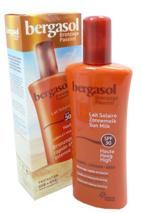 Le laboratoire BERGASOL a conçu des produits solaires de protection tout en sublimant la peau. Le lait solaire protège la peau des rayons UVA/UVB longs et courts (SPF30), et préserve les cellules cutanées du vieillissement prématuré tout en accélérant le bronzage de la peau par sa haute technologie photostable composée notamment de Tinosorb ainsi qu’à la vitamine E. Sa texture ultra-légère non grasse et rapidement absorbée pour une application agréable, laissera la peau douce, soyeuse et délicatement parfumée.