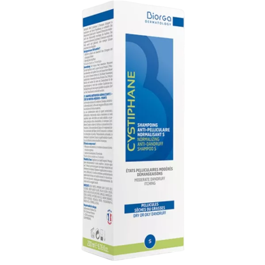 Cystiphane shampooing antipelliculaire normalisant des laboratoires BIORGA, le shampooing qui nettoie tout en douceur et élimine la totalité des pellicules modérées des cuirs chevelus irrités tout en soulageant des irritations.