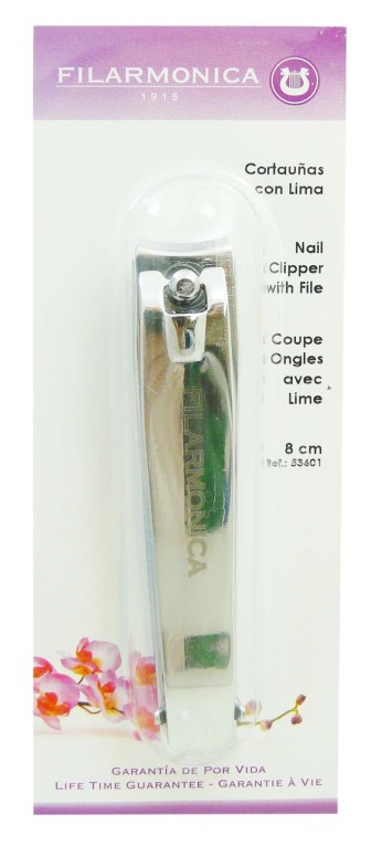 FILARMONICA est une marque espagnole qui propose des produits de manucure (coupe ongles, pinces à épiler,…) en inox pour être sublime au quotidien ! Le coupe ongles de forme droite en chrome, coupe avec précision les ongles trop longs des mains ou des pieds. Sa lime permet de finaliser la manucure afin de donner une belle forme aux ongles.