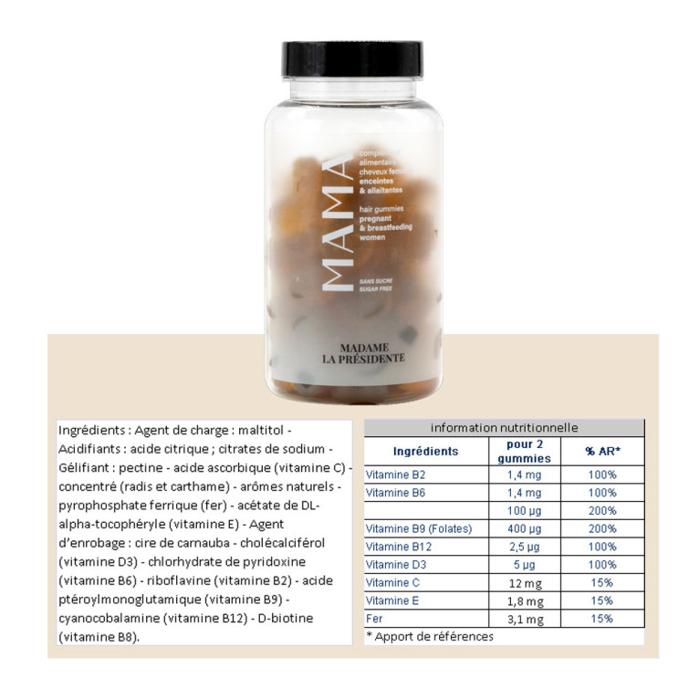 Offrez-vous un coup de pouce naturel avec MADAME LA PRESIDENTE MAMA SANS SUCRE 60 GUMMIES.