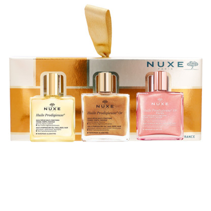NUXE, marque française emblématique de la cosmétique naturelle, vous propose ce coffret exceptionnel regroupant trois miniatures de ses huiles les plus prisées.