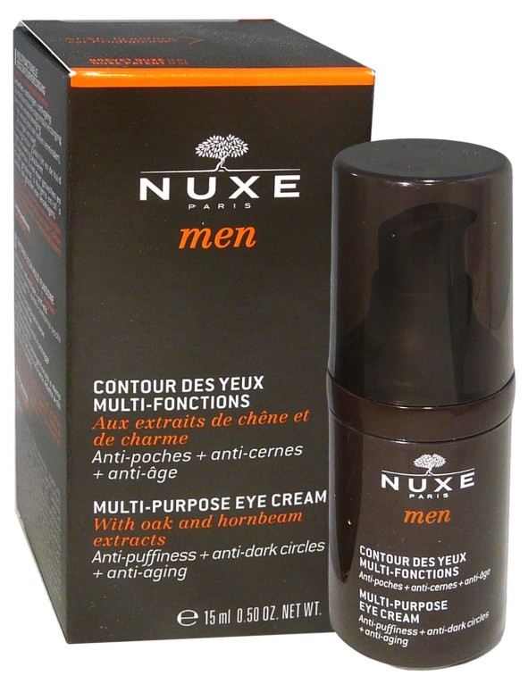 Nuxe, contraction de Nature et Luxe, développe depuis 25 ans des soins cosmétiques raffinés, élaborés avec des actifs végétaux précieux, sans huile minérale ni matière animale hormis les produits de la ruche, pour offrir des produits associant avec le plus bel équilibre : nature, performance et sensualité. La gamme NUXE Men propose des soins multi-fonctions composés avec des extraits d’actifs d’arbres pour offrir tonus et énergie aux peaux masculines. Le contour de yeux multi-fonctions NUXE Men, formulé avec 91% d’ingrédients d’origine naturelle dont des extraits de caféine végétale, de chêne, de charme et des graines d’Araucaria, est spécialement conçu pour lisser le contour fragile de l’œil, réduire les poches et estomper les cernes. Le contour des yeux est défatigué et le regard s’éclaire. Sans paraben.
