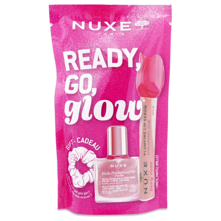 NUXE "READY GO GLOW" VERY ROSE un stick sérum pour lèvres, une huile prodigieuse et un chouchou disponible en vente en ligne à prix discount sur Pharmashopdiscount.