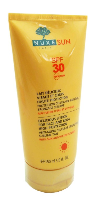 Nuxe, contraction de Nature et Luxe, développe depuis 25 ans des soins cosmétiques raffinés, élaborés avec des actifs végétaux précieux, sans huile minérale ni matière animale hormis les produits de la ruche, pour offrir des produits associant avec le plus bel équilibre : nature, performance et sensualité. La gamme NUXE Sun propose des soins spécialement conçus pour assurer une protection solaire optimale et sublimer la peau. Le lait délicieux Visage et Corps SPF 30 NUXE Sun, à la fragrance chaleureuse d’orange douce, fleurs de tiaré et vanille, à la texture fluide et légère, hydrate l’épiderme et offre une protection cellulaire anti-âge tout en sublimant la peau. Résiste à l’eau, photostable, non comédogène, sans alcool, sans paraben.