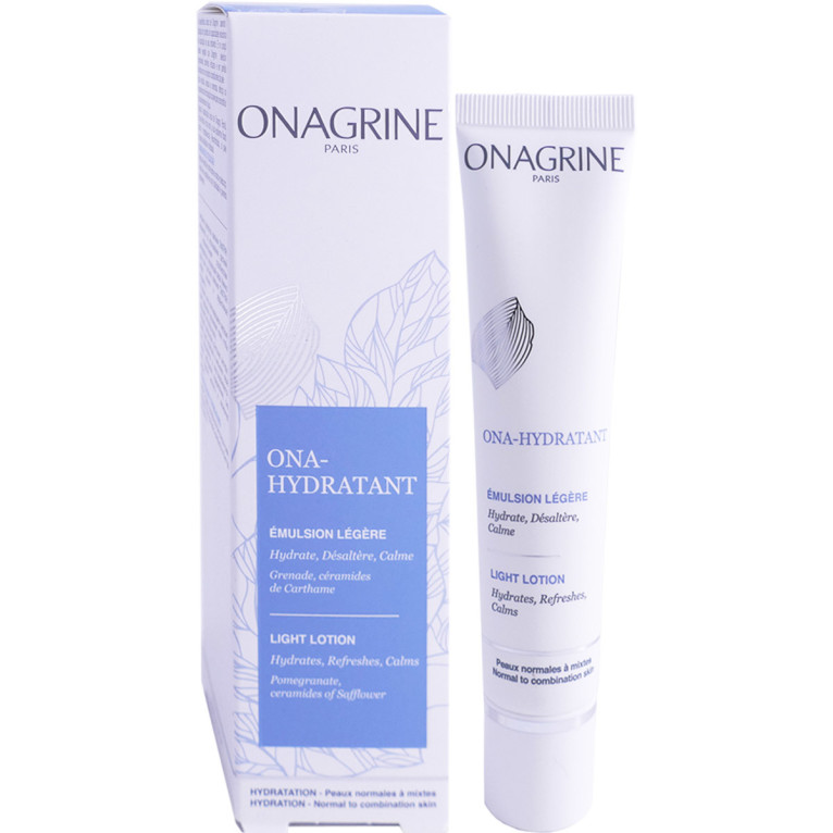 Ona-Hydratant émulsion légère d’ONAGRINE, 30 ans de beauté grandeur nature dans un soin conçu pour hydrater, désaltérer et apaiser les peaux normales à mixtes.