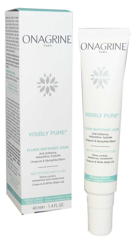 La gamme Visibly Pure d'ONAGRINE est composée de soins à base d'ingrédients naturels pour nettoyer, purifier et redonner de l'éclat aux peaux mixtes du visage et/ou du corps. Le fluide matifiant Visibly Pure aux propriétés matifiantes et détoxifiantes, élimine l’excès de sébum en resserrant les pores de l’épiderme et en le régulant, matifie la peau pour diminuer les zones de brillance de la zone T (front, nez, menton), la rééquilibre pour la rendre nette, l’hydrate et redonne de la clarté au teint grâce au Nymphéa blanc, au Palmier d’Amérique du sud ainsi qu’au complexe Onapure. Sa texture fine et poudrée laissera la peau douce et matifiée dès l’application avec un délicat parfum de Nymphéa Blanc. Jour après jour, la peau est nette et purifiée. Le grain de peau est affiné. Le teint retrouve son éclat.