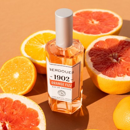 L'eau de Cologne Orange Fizz de BERDOUES réveillera les sens, et redonnera du dynamisme par des senteurs d’agrumes pétillantes. Cette eau de Cologne sublime les multiples facettes des agrumes. Les essences d’orange et de mandarine alliées aux notes de clémentine amènent toute la fraîcheur et la puissance de cette fragrance. Les notes de fleur d’oranger sur fond boisé et musqué apportent élégance et caractère à cette nouvelle eau de Cologne.