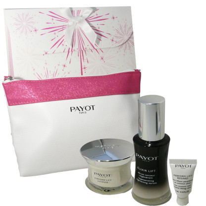 Le coffret Perform Lift de PAYOT discount, 3 produits anti-âge global réunis dans une trousse élégante à offrir ou se faire offrir dans votre parapharmacie à prix discount, pour redonner de la jeunesse au visage et au regard jour après jour : Elixir Lift (30ml) ; Perform Lift intense (50ml) et Performe Lift regard (3ml) Pour toutes les peaux