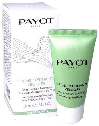 La gamme EXPERT PURETE des laboratoires Payot est composé de soins spécialement destinés à prendre soin des peaux mixtes à grasses et/ou à imperfections, pour purifier, hydrater et matifier, et leur redonner netteté et éclat. La crème matifiante velours composée d’extraits de menthe du chili,, d’extrait de fruit de rose d’extrait de zinc, de poudres matifiantes, et d’huile de rosier muscat qui est riche en acide gras essentiels, va diminuer et réguler l’excès de sébum de l’épiderme pour limiter l’apparition des imperfections (comédons, boutons noirs,…), réguler la fonction de kératinisation de l’épiderme afin de dimminuer les pores dilatés et les resserrées pour affiner le grain de peau, régénérer la peau en renouvelant les cellules, hydrater intensément, et matifier pour limiter les zones de brillance du visage. Sa texture fluide et légère laisse la peau douce comme du velours après l’application. Après le soin, le visage retrouve son éclat, le grain de peau est affiné. Jour après jour, les imperfections disparaissent.