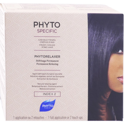 PHYTORELAXER Défrisage Permanent Index 2 discount de PHYTO, la puissance végétale dans votre parapharmacie en ligne à prix discount, dans un programme capillaire conçu pour obtenir un défrisage durable des cheveux crépus, frisés normaux à épais : Baume pré-soin (5ml) ; Crème défrisante sans soude (225ml) ; Lotion activatrice 60ml ; Inducteur index 1 (60ml) ; Emulsion neutralisante et lavante (125ml).