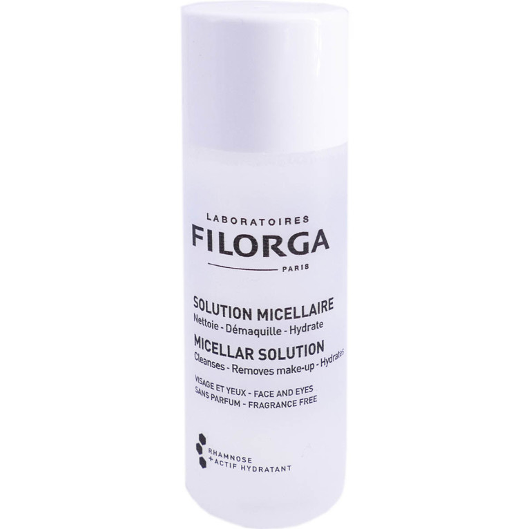 Le laboratoire FILORGA conçoit des produits dermo-cosmétiques inspirés de la médecine esthétique et plastique, pour rétablir jeunesse et beauté à la peau. La Solution Micellaire anti-âge de FILORGA, riche en actifs hydratants, protecteurs et apaisants, est composée de micelles physio-nettoyantes, de tensio-actifs doux, de polysaccharides de rhamnose et de tréhalos. Elle élimine en douceur le maquillage même le plus résistant et toutes les impuretés, renforce les cils, hydrate intensément l’épiderme, et protège les peaux matures des effets du vieillissement. Très douce pour la peau et les yeux, la Solution Micellaire respecte l’équilibre physiologique pour un soin confort sans rougeur. Pratique, ce soin sans parfum ne nécessite pas de rinçage et ne pique pas les yeux. Après le soin, la peau est nette et très douce, le regard retrouve son éclat.