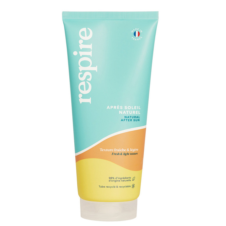 Le soin après-soleil RESPIRE est formulé avec des ingrédients naturels, tels que l'aloe vera et la Micro-algue rouge de l'étang de Thau. Il est spécialement conçu pour soulager les sensations d'échauffement et d'inconfort causées par le soleil.