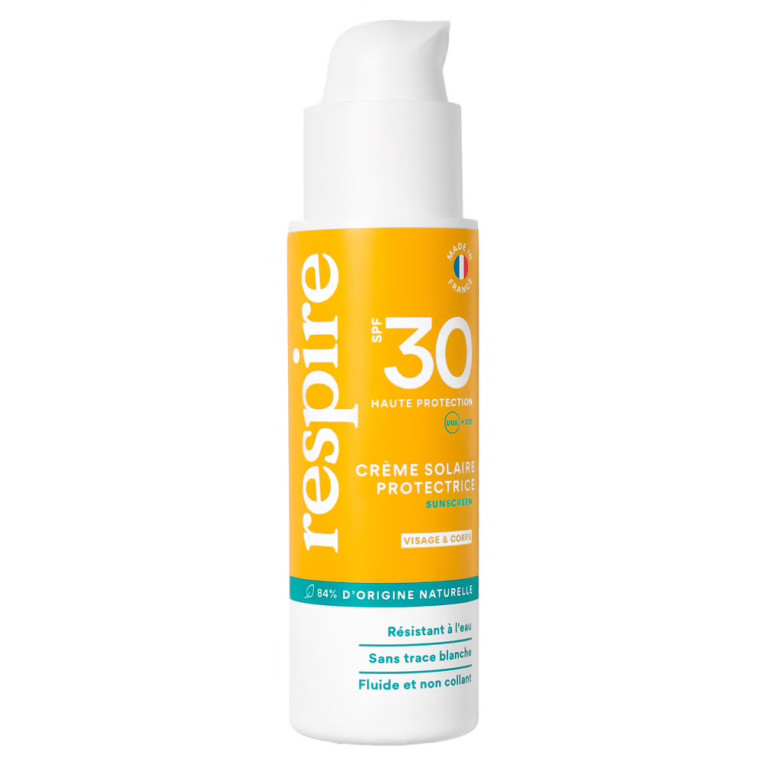 Ne laissez pas les rayons du soleil endommager votre peau. Protégez-vous efficacement avec la crème solaire visage & corps SPF30 100ml de RESPIRE. Commandez dès maintenant et profitez d'une protection solaire de qualité à prix discount.