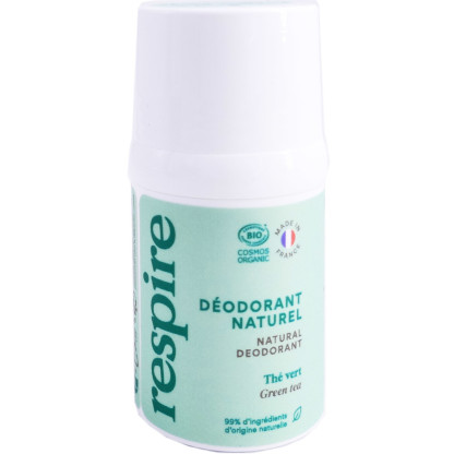 Déodorant Bio Thé Vert discount de Respire, un déodorant Roll'on à 99% d'origine naturelle efficace contre les mauvaises odeurs, dans votre parapharmacie en ligne à prix discount.