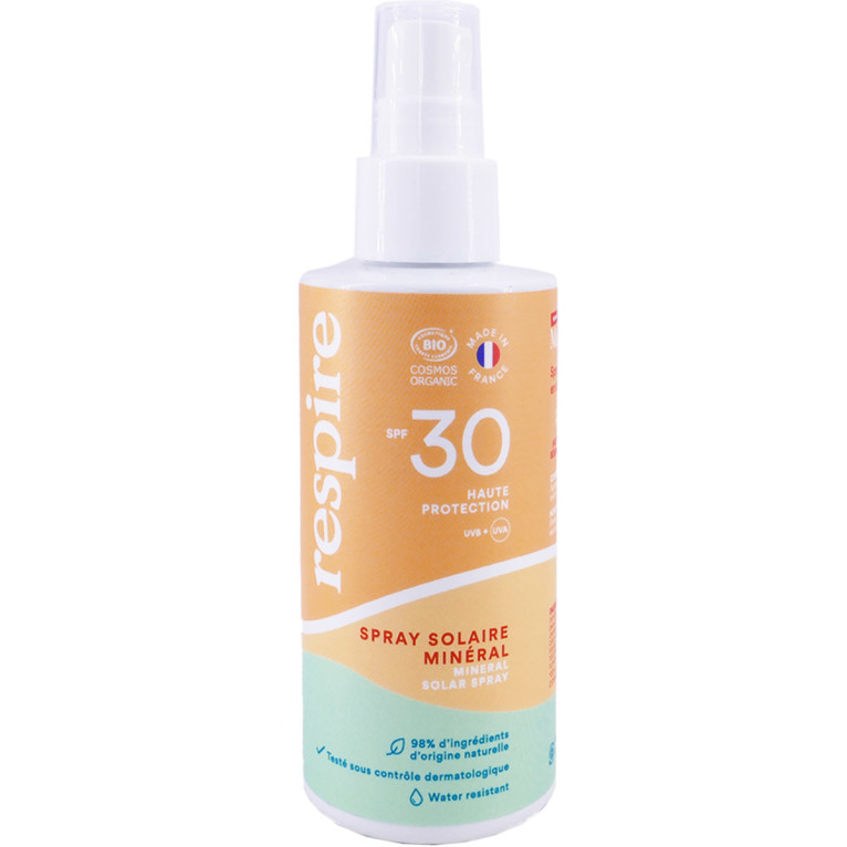 Ne laissez plus les rayons du soleil endommager votre peau, optez pour le spray solaire minéral SPF30 120ml de RESPIRE. Protégez-vous efficacement tout en préservant votre peau et l'environnement.